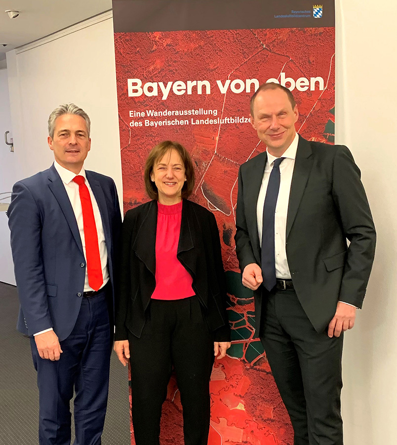 Anlässlich des fünfjährigen Bestehens des Bayerischen Landesluftbildzentrums stellte die Wanderausstellung dessen Angebote einem breiten Publikum vor. Die multimedial gestaltete und leicht verständlich aufbereitete Ausstellung vermittelt einen spannenden Einblick in die Geschichte und Technik der Luftbildfotografie. Auf 14 Ausstellungstafeln wurde den Besucherinnen und Besuchern gezeigt, wie Luftbilder gemacht werden, wie sie aufbereitet werden und wo sie eingesetzt werden.